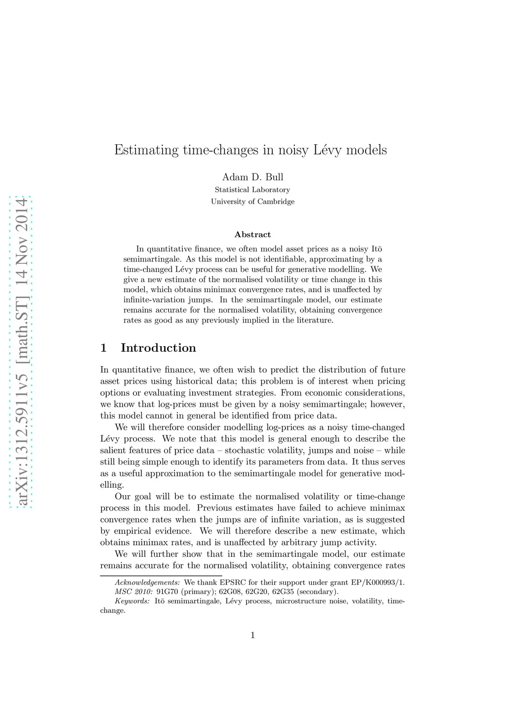 In quantitative finance, we often model asset prices as a noisy Ito semimartingale. As this model is not identifiable, approximating by a time-changed Levy process can be useful for generative modelling. We give a new estimate of the normalised volatility or time change in this model, which obtains minimax convergence rates, and is unaffected by infinite-variation jumps. In the semimartingale model, our estimate remains accurate for the normalised volatility, obtaining convergence rates as good as any previously implied in the literature.