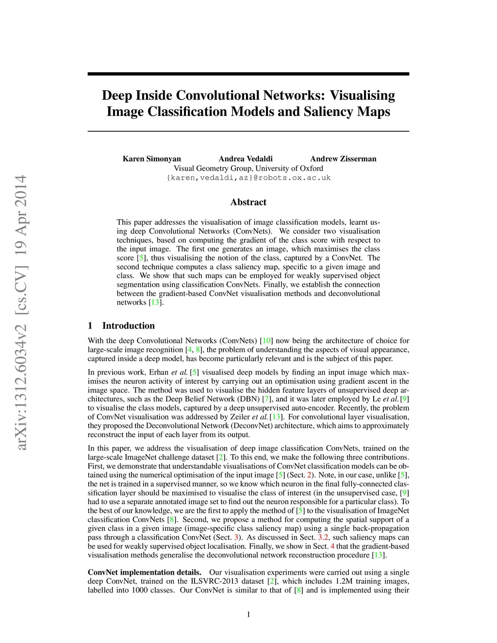 Deep Inside Convolutional Networks: Visualising Image Classification