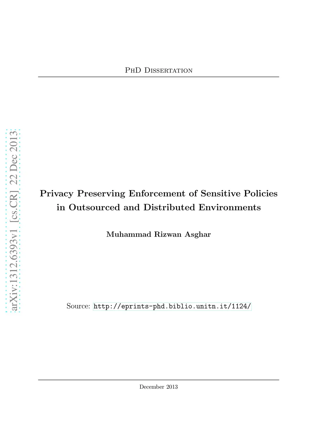 Privacy Preserving Enforcement of Sensitive Policies in Outsourced and