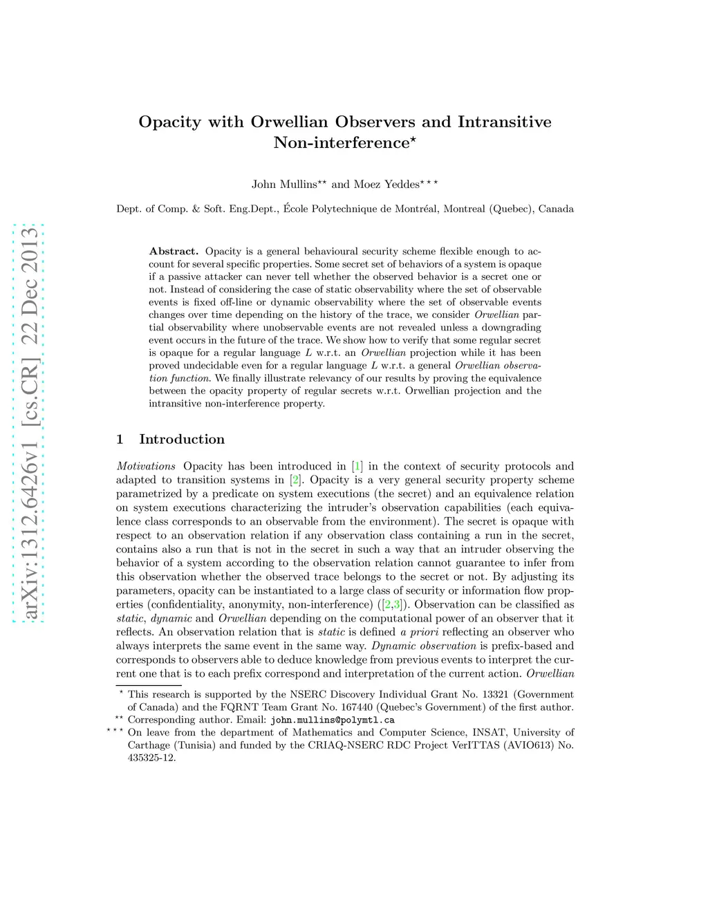 Opacity with Orwellian Observers and Intransitive Non-interference