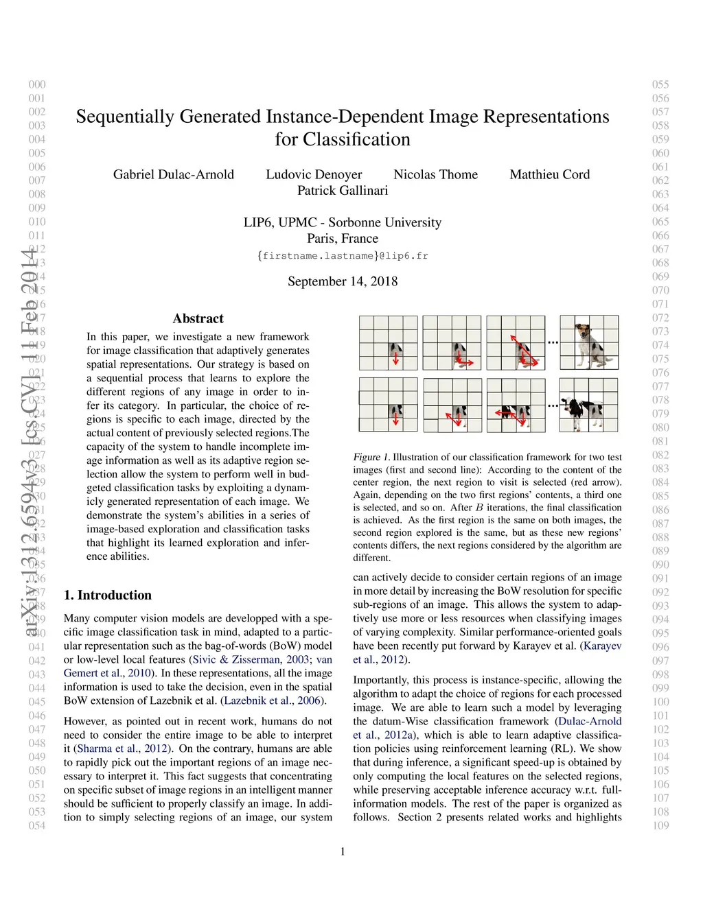 In this paper, we investigate a new framework for image classification that adaptively generates spatial representations. Our strategy is based on a sequential process that learns to explore the different regions of any image in order to infer its category. In particular, the choice of regions is specific to each image, directed by the actual content of previously selected regions.The capacity of the system to handle incomplete image information as well as its adaptive region selection allow the system to perform well in budgeted classification tasks by exploiting a dynamicly generated representation of each image. We demonstrate the system's abilities in a series of image-based exploration and classification tasks that highlight its learned exploration and inference abilities.