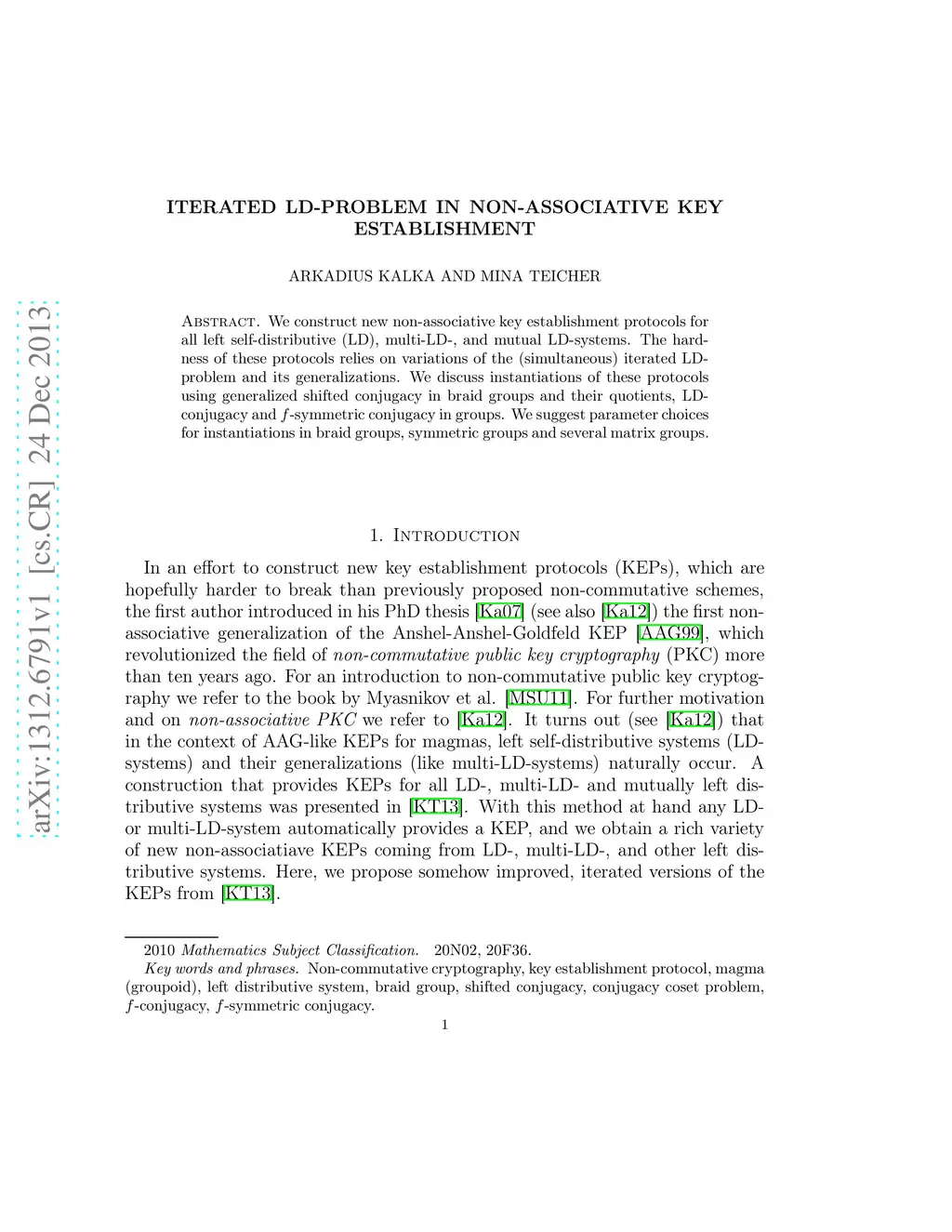 Iterated LD-Problem in non-associative key establishment