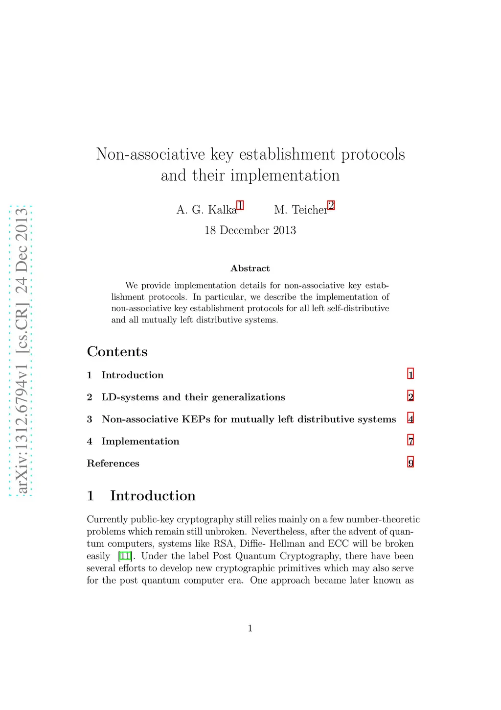 We provide implementation details for non-associative key establishment protocols. In particular, we describe the implementation of non-associative key establishment protocols for all left self-distributive and all mutually left distributive systems.