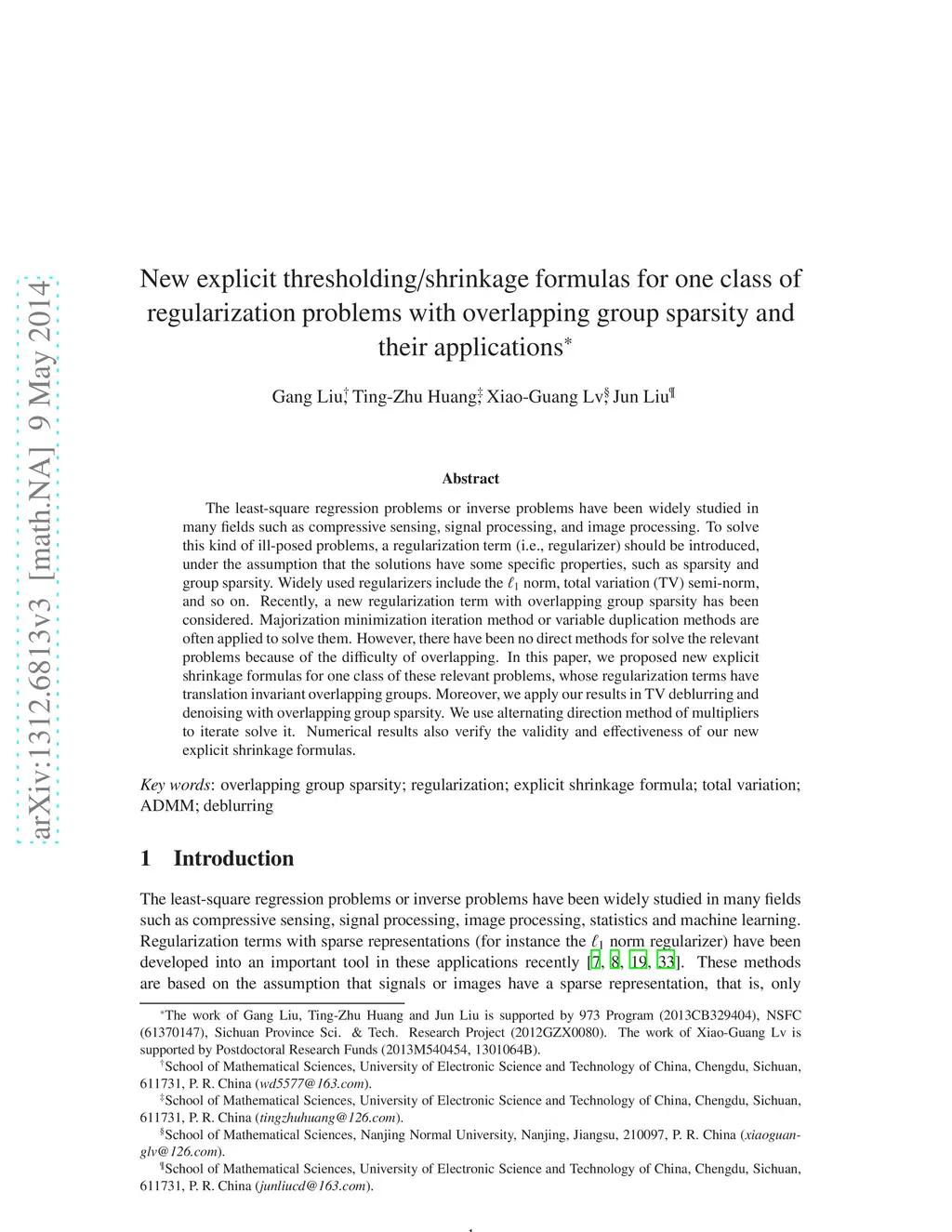 The least-square regression problems or inverse problems have been widely studied in many fields such as compressive sensing, signal processing, and image processing. To solve this kind of ill-posed problems, a regularization term (i.e., regularizer) should be introduced, under the assumption that the solutions have some specific properties, such as sparsity and group sparsity. Widely used regularizers include the norm, total variation (TV) semi-norm, and so on. Recently, a new regularization term with overlapping group sparsity has been considered. Majorization minimization iteration method or variable duplication methods are often applied to solve them. However, there have been no direct methods for solve the relevant problems because of the difficulty of overlapping. In this paper, we proposed new explicit shrinkage formulas for one class of these relevant problems, whose regularization terms have translation invariant overlapping groups. Moreover, we apply our results in TV deblurring and denoising with overlapping group sparsity. We use alternating direction method of multipliers to iterate solve it and obtain convergence theorem results. Numerical results also verify the validity and effectiveness of our new explicit shrinkage formulas.