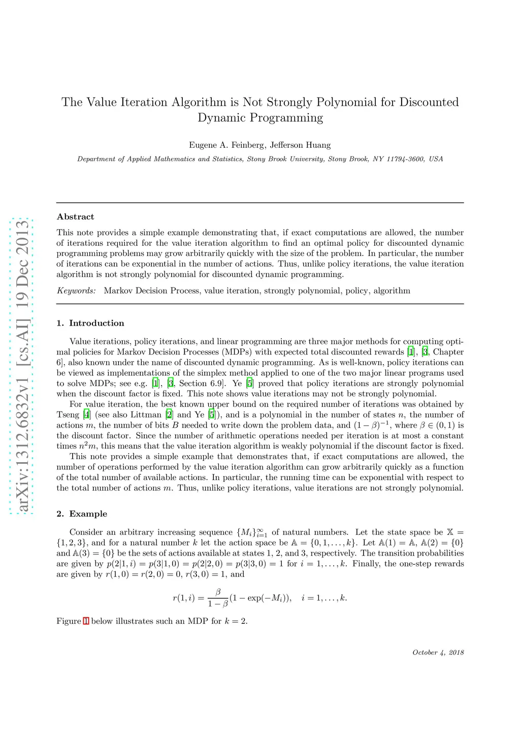 This note provides a simple example demonstrating that, if exact computations are allowed, the number of iterations required for the value iteration algorithm to find an optimal policy for discounted dynamic programming problems may grow arbitrarily quickly with the size of the problem. In particular, the number of iterations can be exponential in the number of actions. Thus, unlike policy iterations, the value iteration algorithm is not strongly polynomial for discounted dynamic programming.