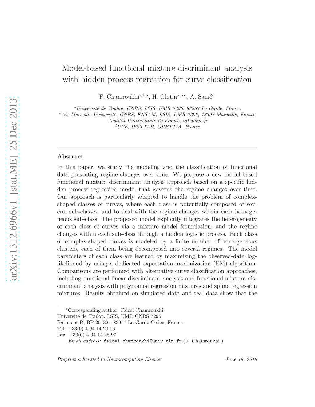 In this paper, we study the modeling and the classification of functional data presenting regime changes over time. We propose a new model-based functional mixture discriminant analysis approach based on a specific hidden process regression model that governs the regime changes over time. Our approach is particularly adapted to handle the problem of complex-shaped classes of curves, where each class is potentially composed of several sub-classes, and to deal with the regime changes within each homogeneous sub-class. The proposed model explicitly integrates the heterogeneity of each class of curves via a mixture model formulation, and the regime changes within each sub-class through a hidden logistic process. Each class of complex-shaped curves is modeled by a finite number of homogeneous clusters, each of them being decomposed into several regimes. The model parameters of each class are learned by maximizing the observed-data log-likelihood by using a dedicated expectation-maximization (EM) algorithm. Comparisons are performed with alternative curve classification approaches, including functional linear discriminant analysis and functional mixture discriminant analysis with polynomial regression mixtures and spline regression mixtures. Results obtained on simulated data and real data show that the proposed approach outperforms the alternative approaches in terms of discrimination, and significantly improves the curves approximation.