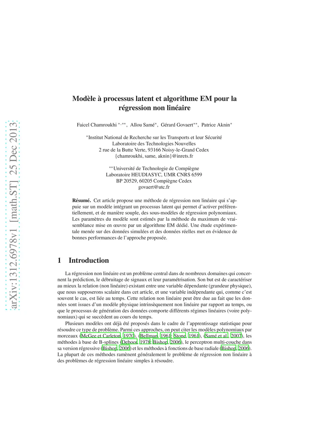 A non linear regression approach which consists of a specific regression model incorporating a latent process, allowing various polynomial regression models to be activated preferentially and smoothly, is introduced in this paper. The model parameters are estimated by maximum likelihood performed via a dedicated expecation-maximization (EM) algorithm. An experimental study using simulated and real data sets reveals good performances of the proposed approach.