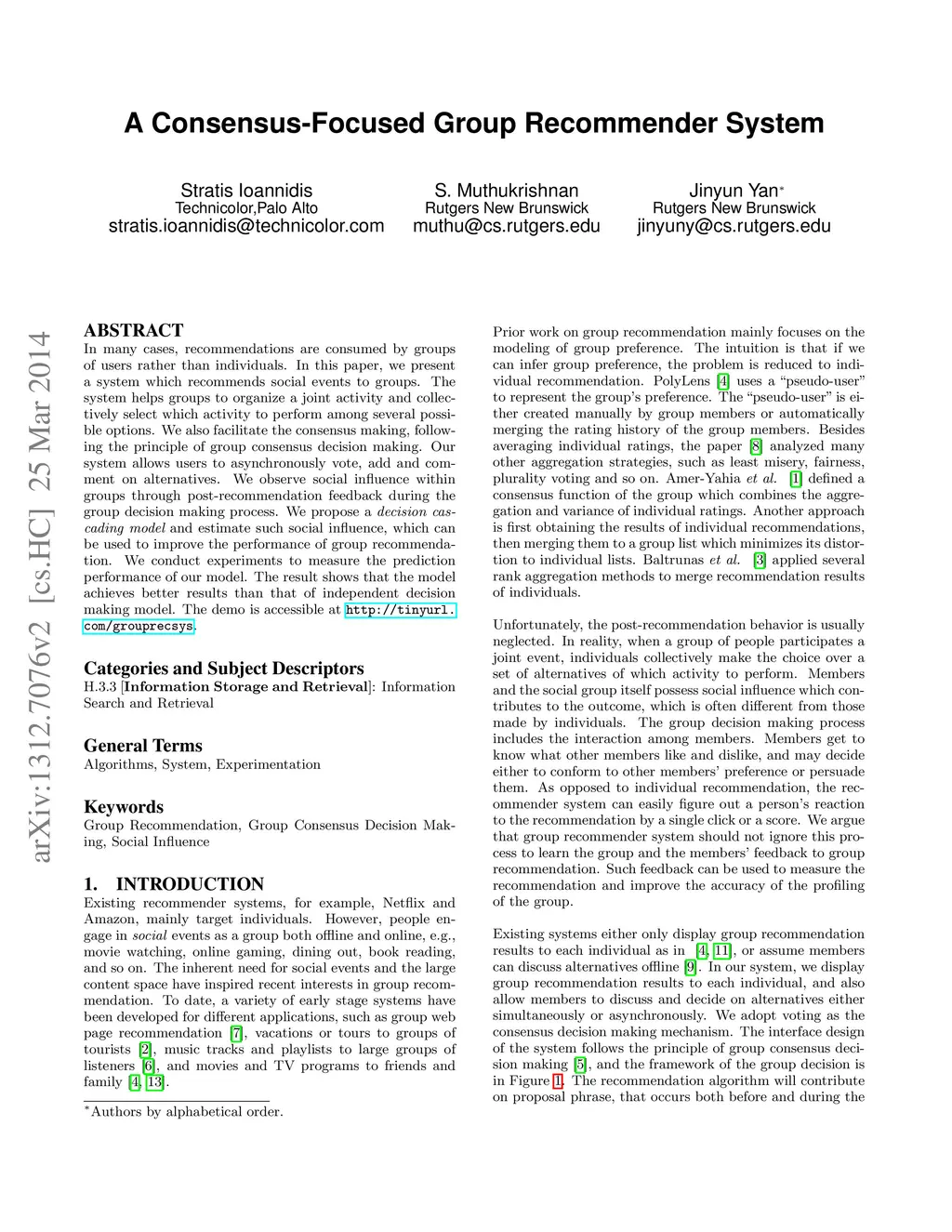 In many cases, recommendations are consumed by groups of users rather than individuals. In this paper, we present a system which recommends social events to groups. The system helps groups to organize a joint activity and collectively select which activity to perform among several possible options. We also facilitate the consensus making, following the principle of group consensus decision making. Our system allows users to asynchronously vote, add and comment on alternatives. We observe social influence within groups through post-recommendation feedback during the group decision making process. We propose a decision cascading model and estimate such social influence, which can be used to improve the performance of group recommendation. We conduct experiments to measure the prediction performance of our model. The result shows that the model achieves better results than that of independent decision making model.