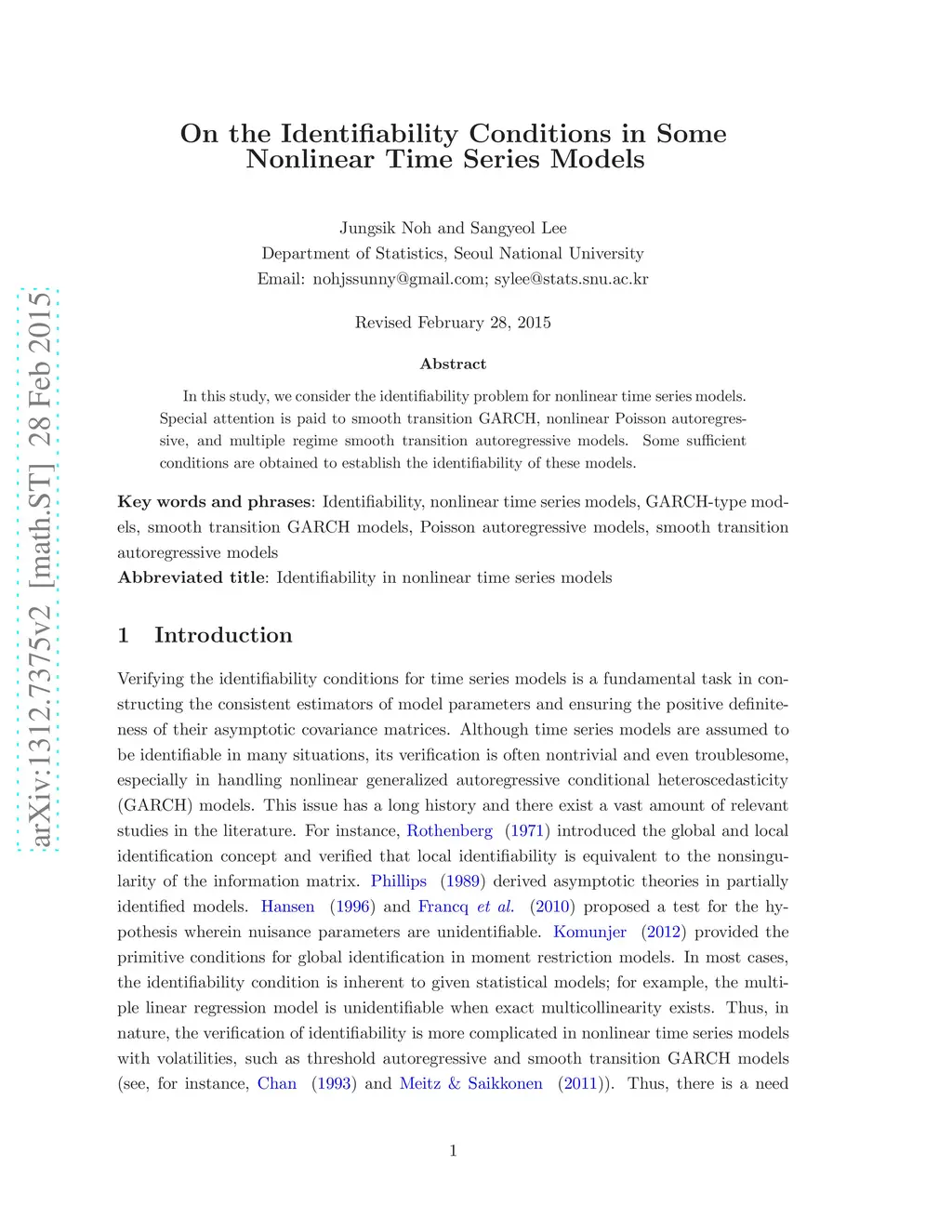 On the Identifiability Conditions in Some Nonlinear Time Series Models