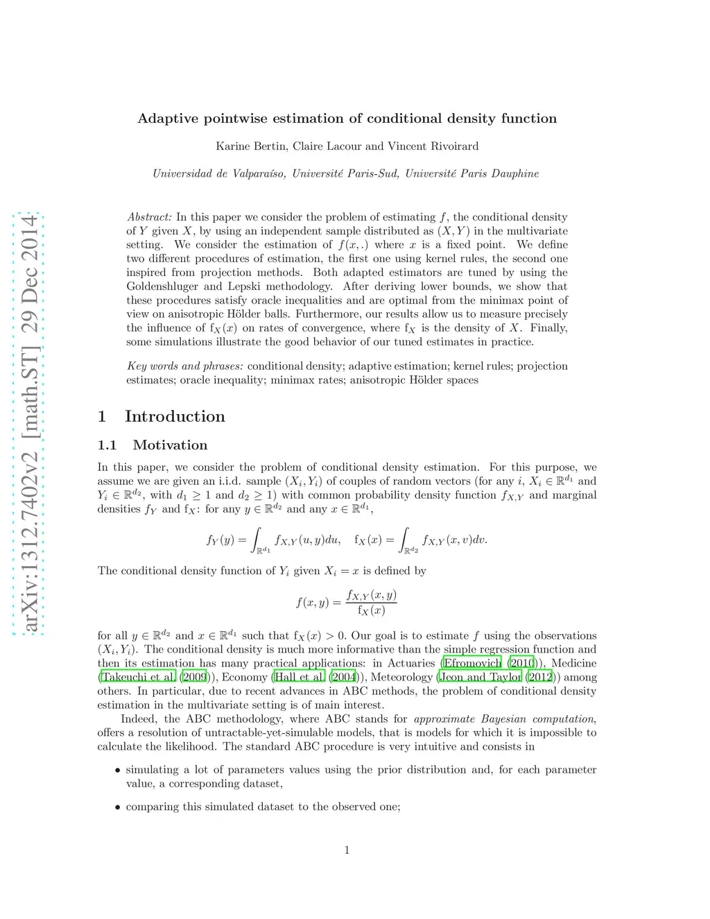 In this paper we consider the problem of estimating , the conditional density of given , by using an independent sample distributed as in the multivariate setting. We consider the estimation of where is a fixed point. We define two different procedures of estimation, the first one using kernel rules, the second one inspired from projection methods. Both adapted estimators are tuned by using the Goldenshluger and Lepski methodology. After deriving lower bounds, we show that these procedures satisfy oracle inequalities and are optimal from the minimax point of view on anisotropic H\"{o}lder balls. Furthermore, our results allow us to measure precisely the influence of on rates of convergence, where is the density of . Finally, some simulations illustrate the good behavior of our tuned estimates in practice.