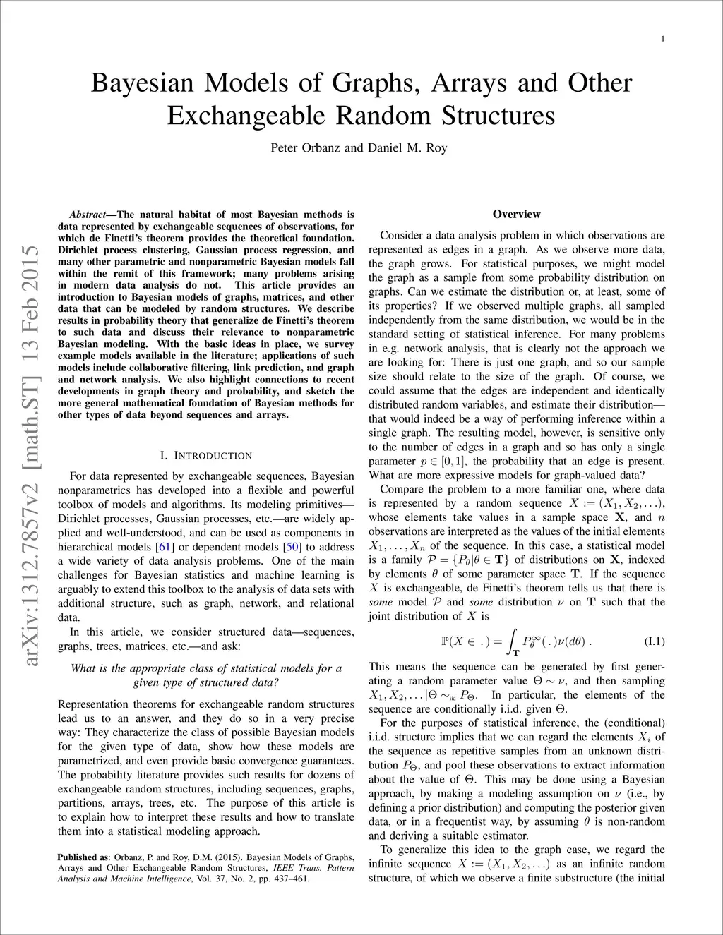 The natural habitat of most Bayesian methods is data represented by exchangeable sequences of observations, for which de Finetti's theorem provides the theoretical foundation. Dirichlet process clustering, Gaussian process regression, and many other parametric and nonparametric Bayesian models fall within the remit of this framework; many problems arising in modern data analysis do not. This article provides an introduction to Bayesian models of graphs, matrices, and other data that can be modeled by random structures. We describe results in probability theory that generalize de Finetti's theorem to such data and discuss their relevance to nonparametric Bayesian modeling. With the basic ideas in place, we survey example models available in the literature; applications of such models include collaborative filtering, link prediction, and graph and network analysis. We also highlight connections to recent developments in graph theory and probability, and sketch the more general mathematical foundation of Bayesian methods for other types of data beyond sequences and arrays.