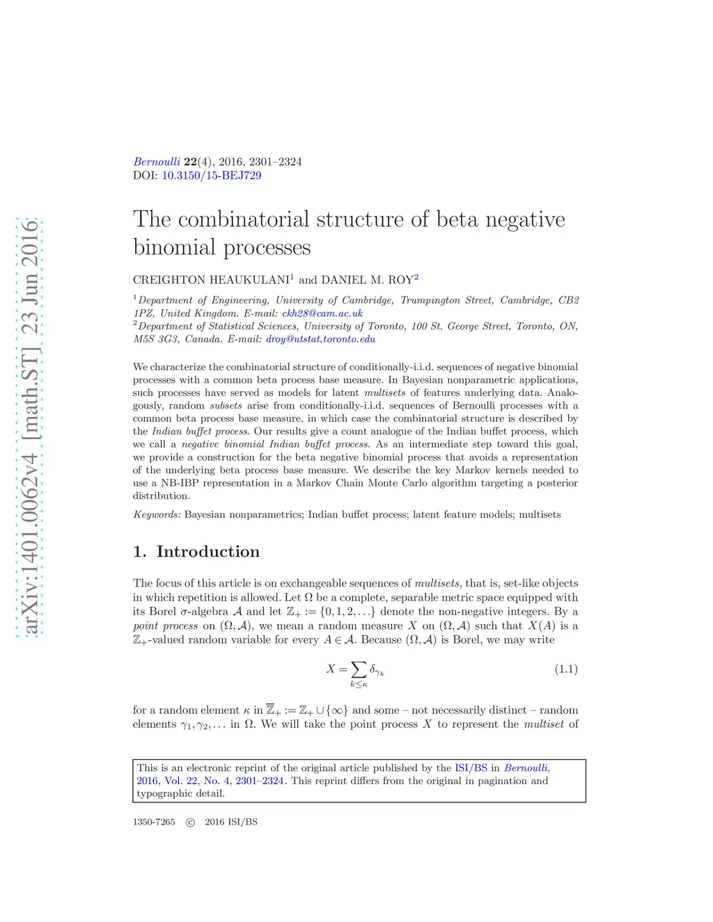We characterize the combinatorial structure of conditionally-i.i.d. sequences of negative binomial processes with a common beta process base measure. In Bayesian nonparametric applications, such processes have served as models for latent multisets of features underlying data. Analogously, random subsets arise from conditionally-i.i.d. sequences of Bernoulli processes with a common beta process base measure, in which case the combinatorial structure is described by the Indian buffet process. Our results give a count analogue of the Indian buffet process, which we call a negative binomial Indian buffet process. As an intermediate step toward this goal, we provide a construction for the beta negative binomial process that avoids a representation of the underlying beta process base measure. We describe the key Markov kernels needed to use a NB-IBP representation in a Markov Chain Monte Carlo algorithm targeting a posterior distribution.