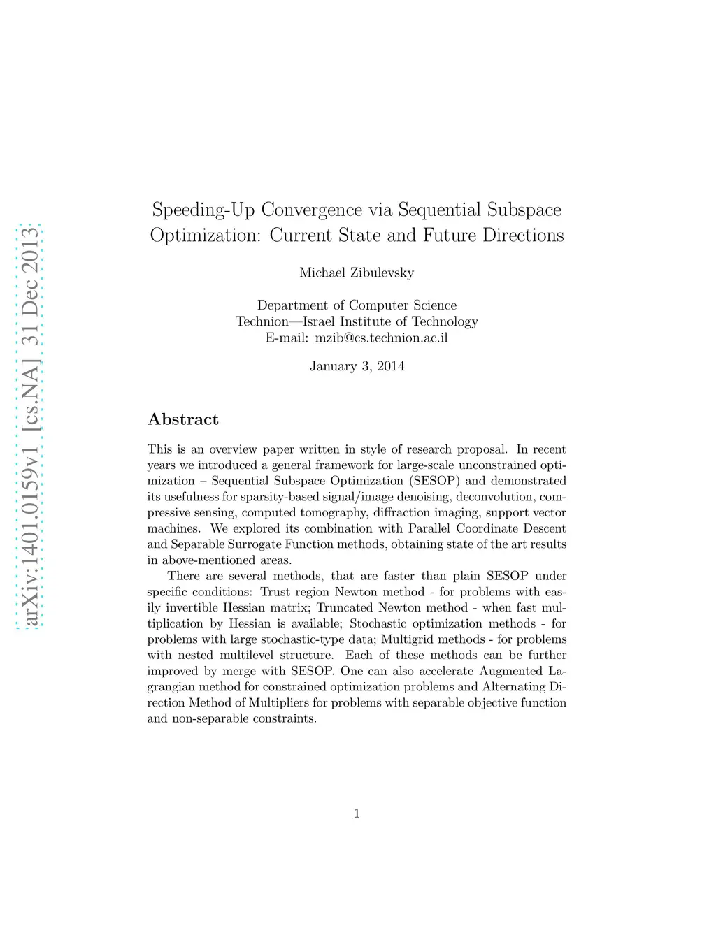 This is an overview paper written in style of research proposal. In recent years we introduced a general framework for large-scale unconstrained optimization -- Sequential Subspace Optimization (SESOP) and demonstrated its usefulness for sparsity-based signal/image denoising, deconvolution, compressive sensing, computed tomography, diffraction imaging, support vector machines. We explored its combination with Parallel Coordinate Descent and Separable Surrogate Function methods, obtaining state of the art results in above-mentioned areas. There are several methods, that are faster than plain SESOP under specific conditions: Trust region Newton method - for problems with easily invertible Hessian matrix; Truncated Newton method - when fast multiplication by Hessian is available; Stochastic optimization methods - for problems with large stochastic-type data; Multigrid methods - for problems with nested multilevel structure. Each of these methods can be further improved by merge with SESOP. One can also accelerate Augmented Lagrangian method for constrained optimization problems and Alternating Direction Method of Multipliers for problems with separable objective function and non-separable constraints.
