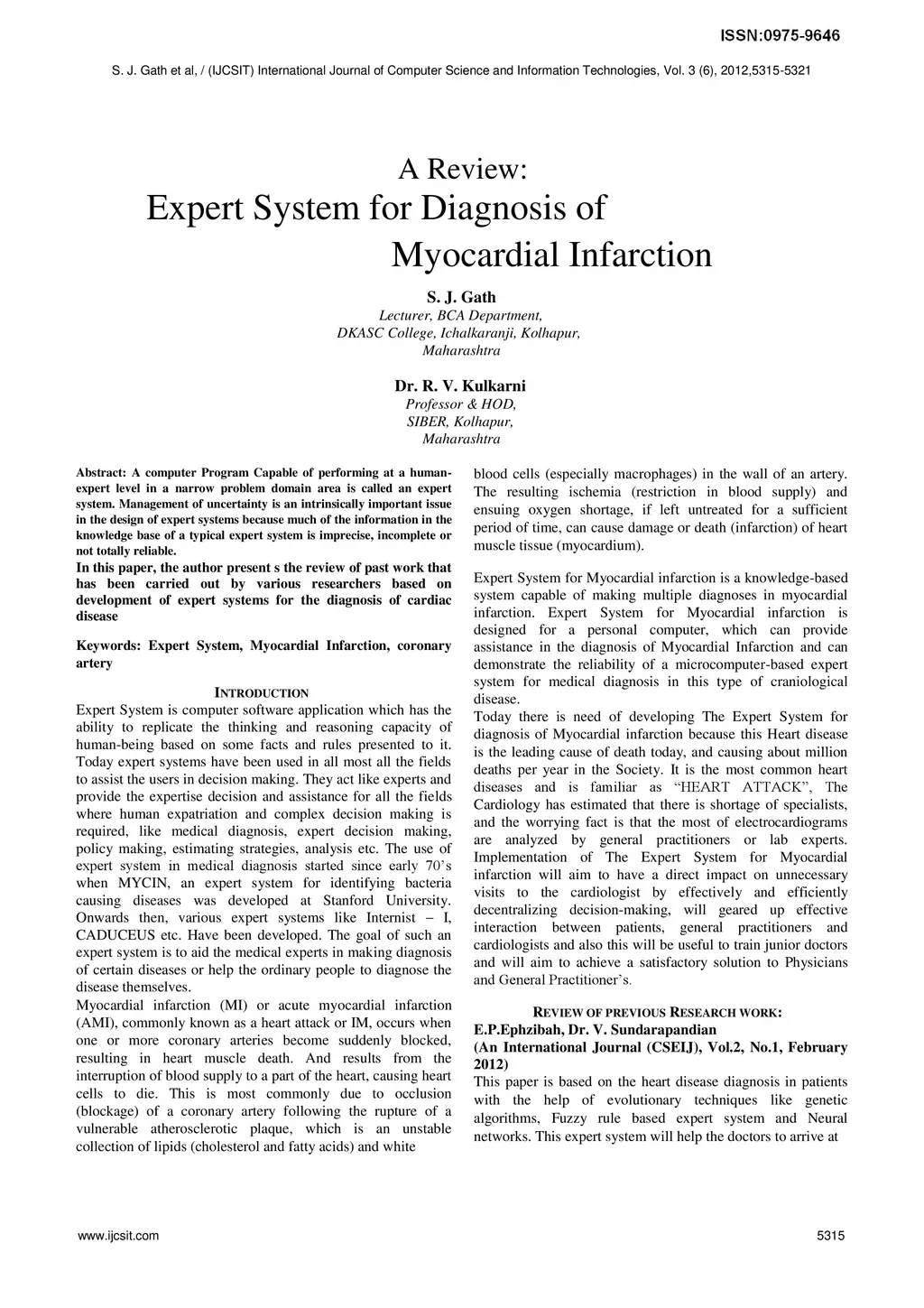 A Review: Expert System for Diagnosis of Myocardial Infarction