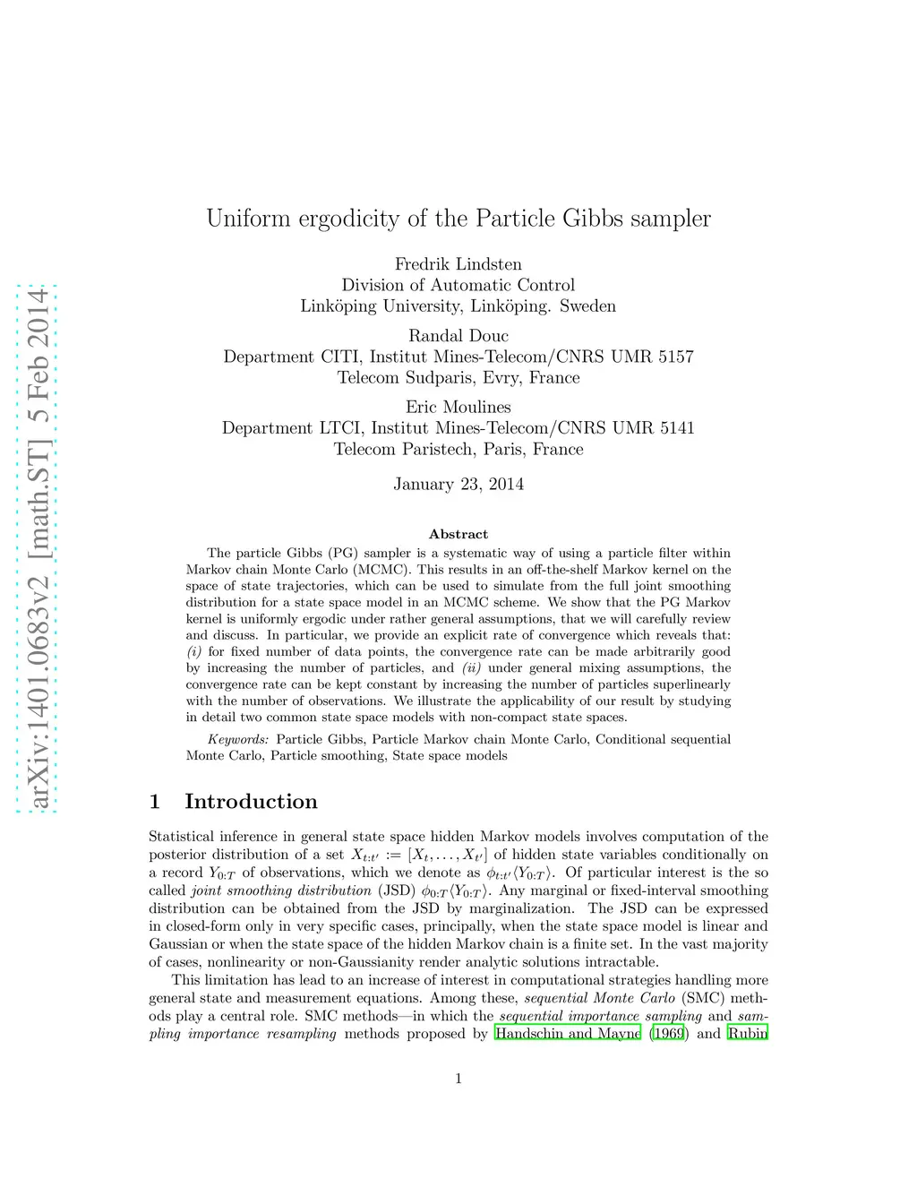 Uniform ergodicity of the Particle Gibbs sampler