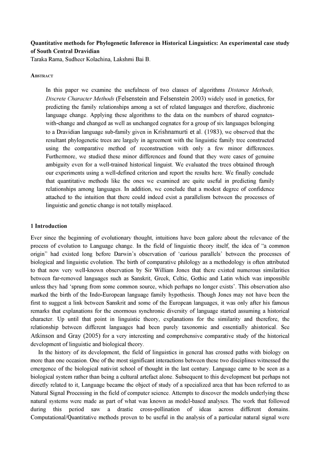 Linguistics: An experimental case study of South Central Dravidian