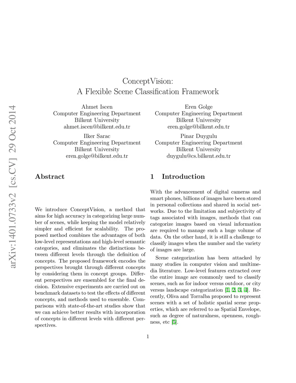 We introduce ConceptVision, a method that aims for high accuracy in categorizing large number of scenes, while keeping the model relatively simpler and efficient for scalability. The proposed method combines the advantages of both low-level representations and high-level semantic categories, and eliminates the distinctions between different levels through the definition of concepts. The proposed framework encodes the perspectives brought through different concepts by considering them in concept groups. Different perspectives are ensembled for the final decision. Extensive experiments are carried out on benchmark datasets to test the effects of different concepts, and methods used to ensemble. Comparisons with state-of-the-art studies show that we can achieve better results with incorporation of concepts in different levels with different perspectives.
