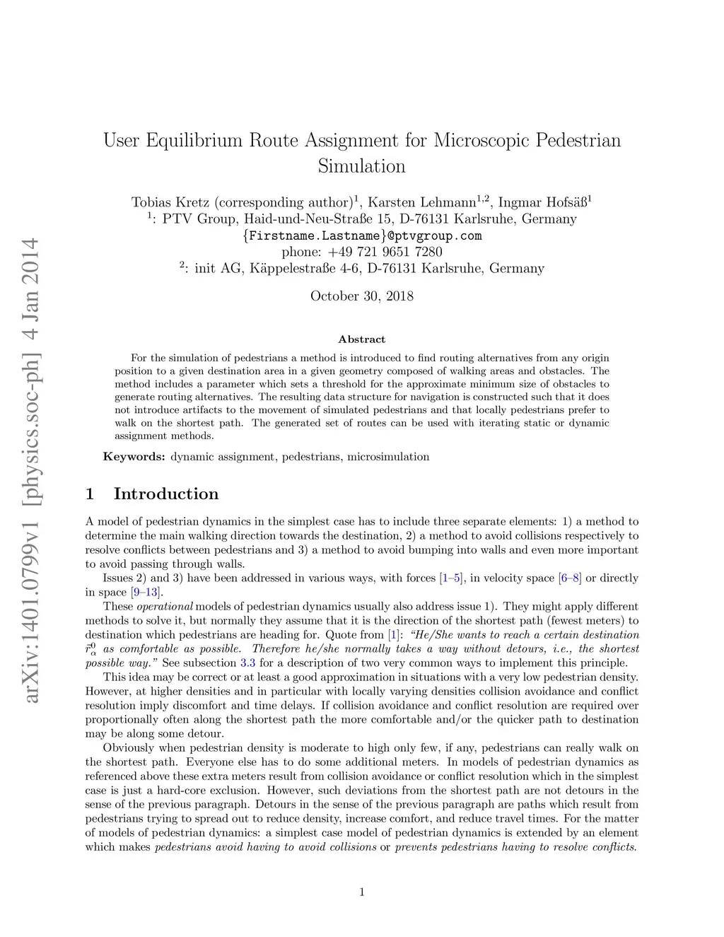 User Equilibrium Route Assignment for Microscopic Pedestrian Simulation