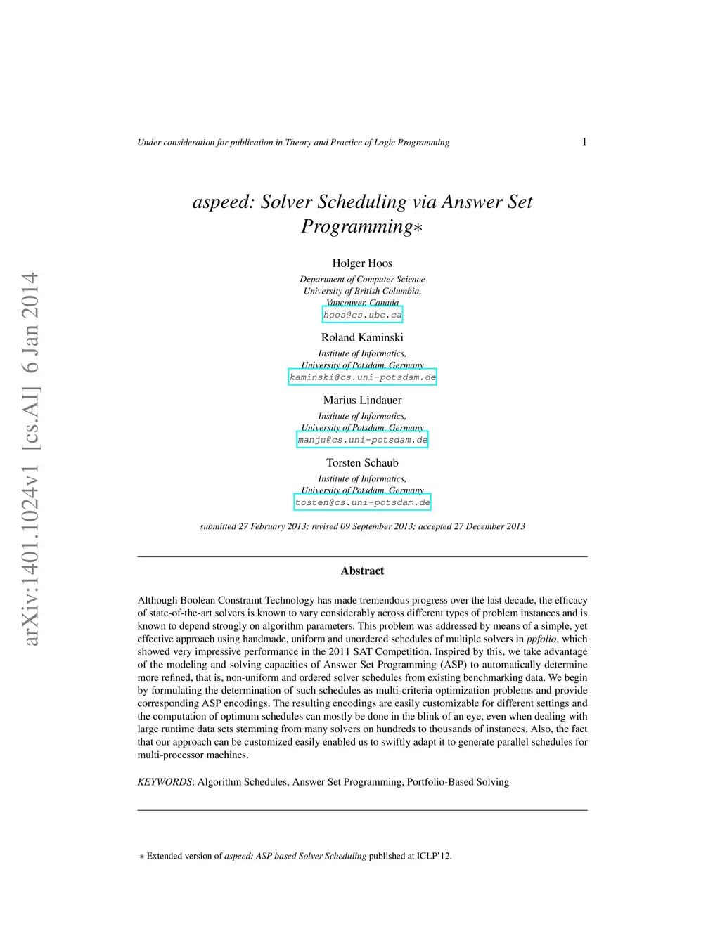Solver Scheduling via Answer Set Programming