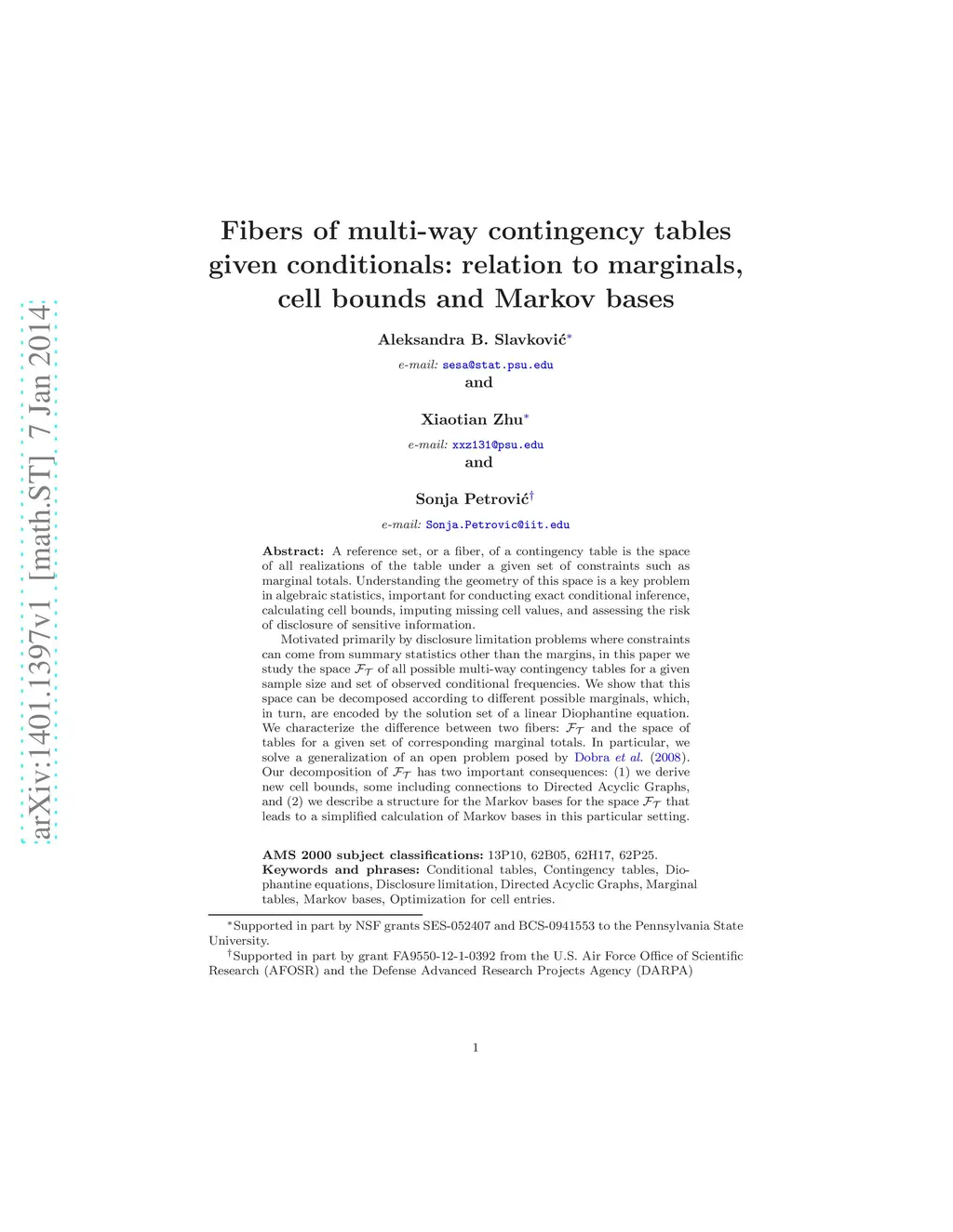 marginals, cell bounds and Markov bases