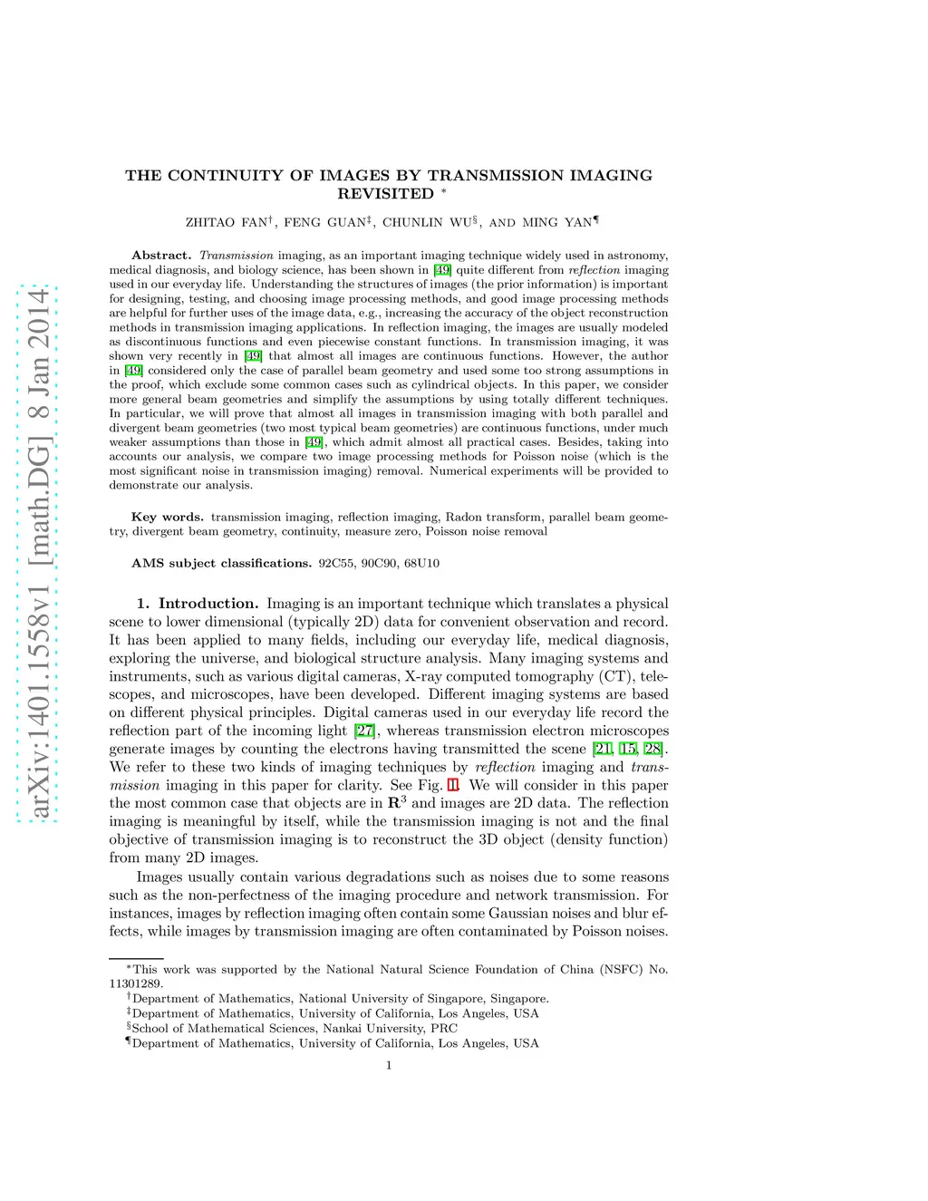Transmission imaging, as an important imaging technique widely used in astronomy, medical diagnosis, and biology science, has been shown in [49] quite different from reflection imaging used in our everyday life. Understanding the structures of images (the prior information) is important for designing, testing, and choosing image processing methods, and good image processing methods are helpful for further uses of the image data, e.g., increasing the accuracy of the object reconstruction methods in transmission imaging applications. In reflection imaging, the images are usually modeled as discontinuous functions and even piecewise constant functions. In transmission imaging, it was shown very recently in [49] that almost all images are continuous functions. However, the author in [49] considered only the case of parallel beam geometry and used some too strong assumptions in the proof, which exclude some common cases such as cylindrical objects. In this paper, we consider more general beam geometries and simplify the assumptions by using totally different techniques. In particular, we will prove that almost all images in transmission imaging with both parallel and divergent beam geometries (two most typical beam geometries) are continuous functions, under much weaker assumptions than those in [49], which admit almost all practical cases. Besides, taking into accounts our analysis, we compare two image processing methods for Poisson noise (which is the most significant noise in transmission imaging) removal. Numerical experiments will be provided to demonstrate our analysis.