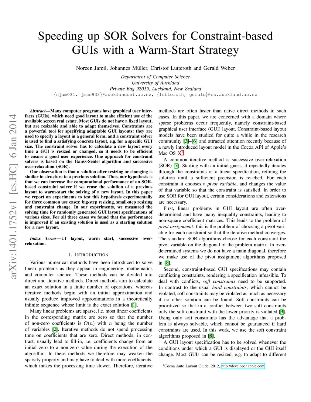 Speeding up SOR Solvers for Constraint-based GUIs with a Warm-Start