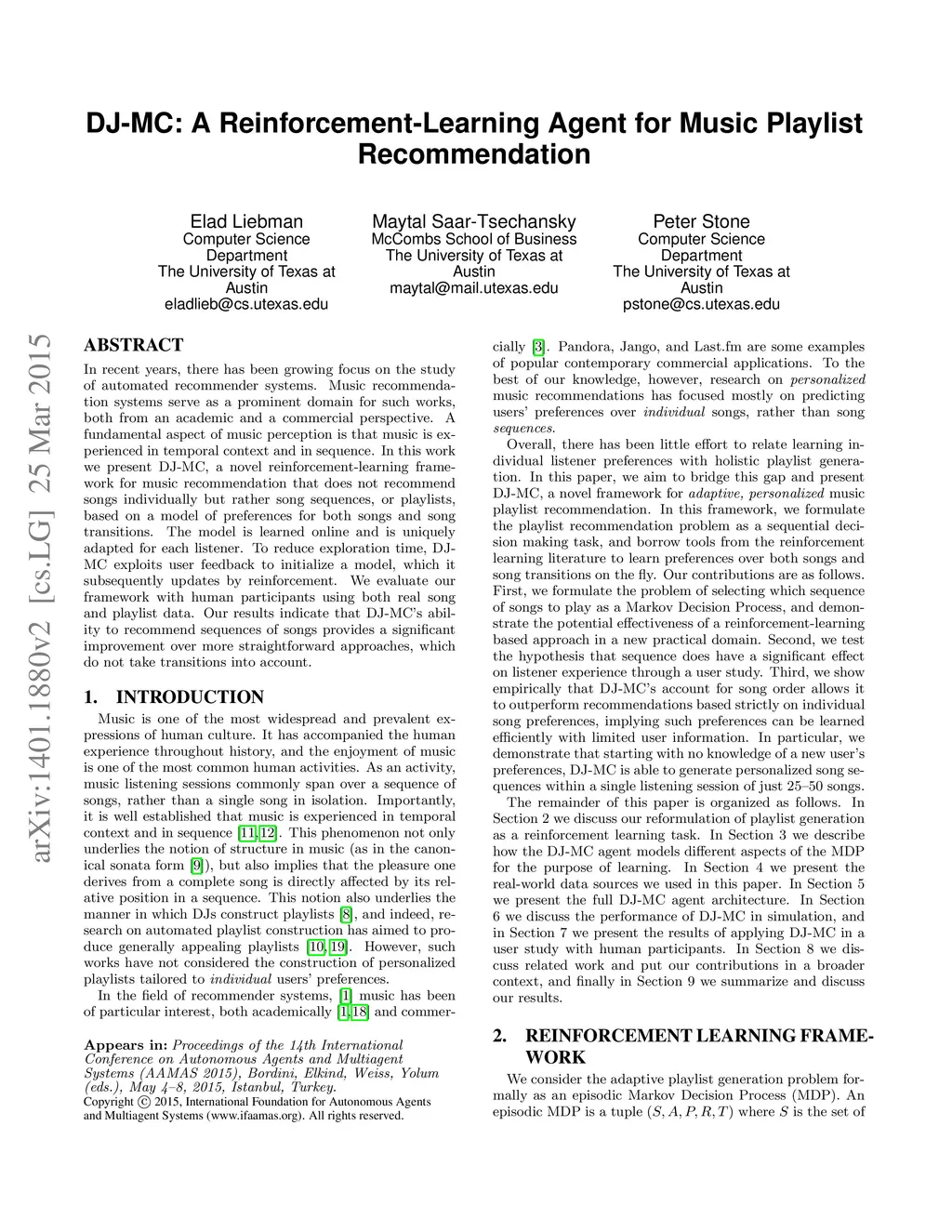 DJ-MC: A Reinforcement-Learning Agent for Music Playlist Recommendation
