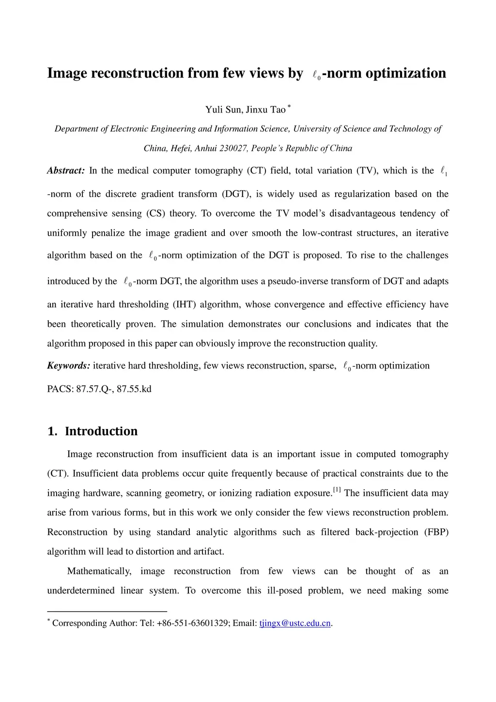 The L1-norm of the gradient-magnitude images (GMI), which is the well-known total variation (TV) model, is widely used as regularization in the few views CT reconstruction. As the L1-norm TV regularization is tending to uniformly penalize the image gradient and the low-contrast structures are sometimes over smoothed, we proposed a new algorithm based on the L0-norm of the GMI to deal with the few views problem. To rise to the challenges introduced by the L0-norm DGT, the algorithm uses a pseudo-inverse transform of DGT and adapts an iterative hard thresholding (IHT) algorithm, whose convergence and effective efficiency have been theoretically proven. The simulation indicates that the algorithm proposed in this paper can obviously improve the reconstruction quality.