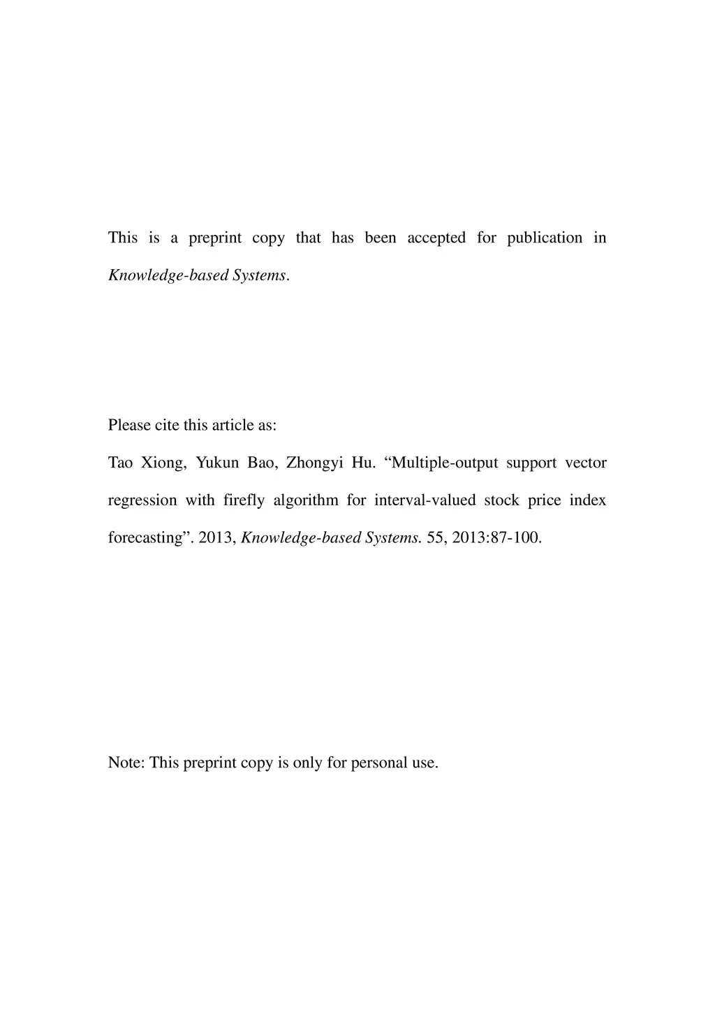 Multiple-output support vector regression with a firefly algorithm for