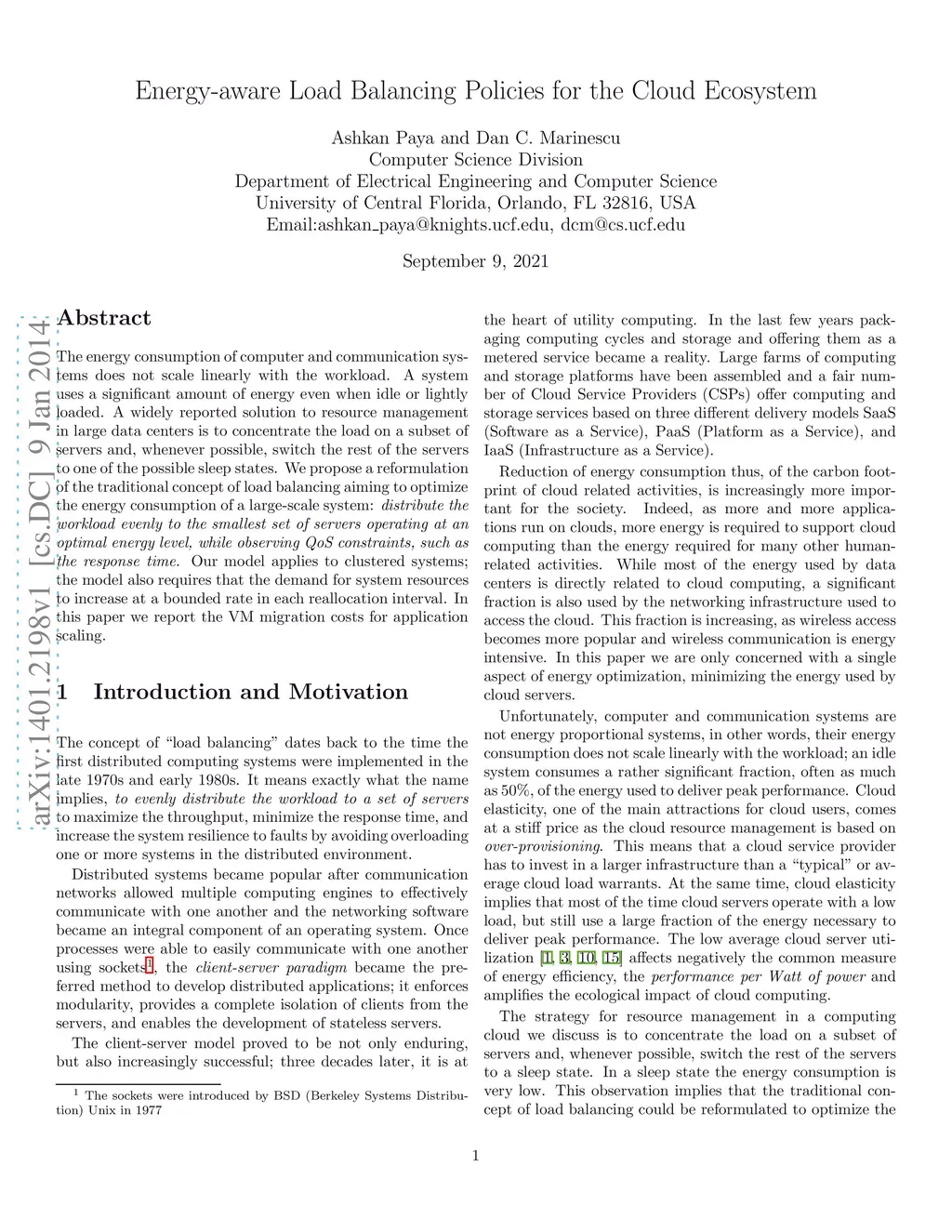 Energy-aware Load Balancing Policies for the Cloud Ecosystem