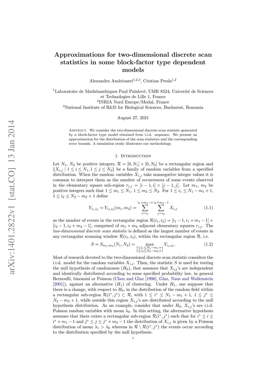 We consider the two-dimensional discrete scan statistic generated by a block-factor type model obtained from i.i.d. sequence. We present an approximation for the distribution of the scan statistics and the corresponding error bounds. A simulation study illustrates our methodology.