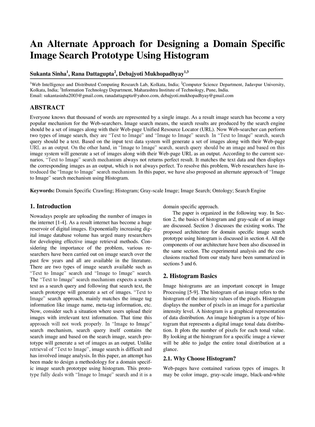 Everyone knows that thousand of words are represented by a single image. As a result image search has become a very popular mechanism for the Web searchers. Image search means, the search results are produced by the search engine should be a set of images along with their Web page Unified Resource Locator. Now Web searcher can perform two types of image search, they are Text to Image and Image to Image search. In Text to Image search, search query should be a text. Based on the input text data system will generate a set of images along with their Web page URL as an output. On the other hand, in Image to Image search, search query should be an image and based on this image system will generate a set of images along with their Web page URL as an output. According to the current scenarios, Text to Image search mechanism always not returns perfect result. It matches the text data and then displays the corresponding images as an output, which is not always perfect. To resolve this problem, Web researchers have introduced the Image to Image search mechanism. In this paper, we have also proposed an alternate approach of Image to Image search mechanism using Histogram.
