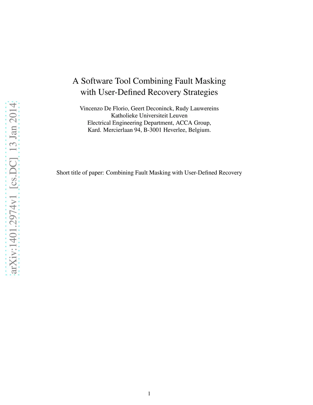 Software Tool Combining Fault Masking with User-Defined Recovery