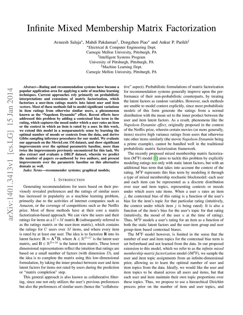 Rating and recommendation systems have become a popular application area for applying a suite of machine learning techniques. Current approaches rely primarily on probabilistic interpretations and extensions of matrix factorization, which factorizes a user-item ratings matrix into latent user and item vectors. Most of these methods fail to model significant variations in item ratings from otherwise similar users, a phenomenon known as the "Napoleon Dynamite" effect. Recent efforts have addressed this problem by adding a contextual bias term to the rating, which captures the mood under which a user rates an item or the context in which an item is rated by a user. In this work, we extend this model in a nonparametric sense by learning the optimal number of moods or contexts from the data, and derive Gibbs sampling inference procedures for our model. We evaluate our approach on the MovieLens 1M dataset, and show significant improvements over the optimal parametric baseline, more than twice the improvements previously encountered for this task. We also extract and evaluate a DBLP dataset, wherein we predict the number of papers co-authored by two authors, and present improvements over the parametric baseline on this alternative domain as well.