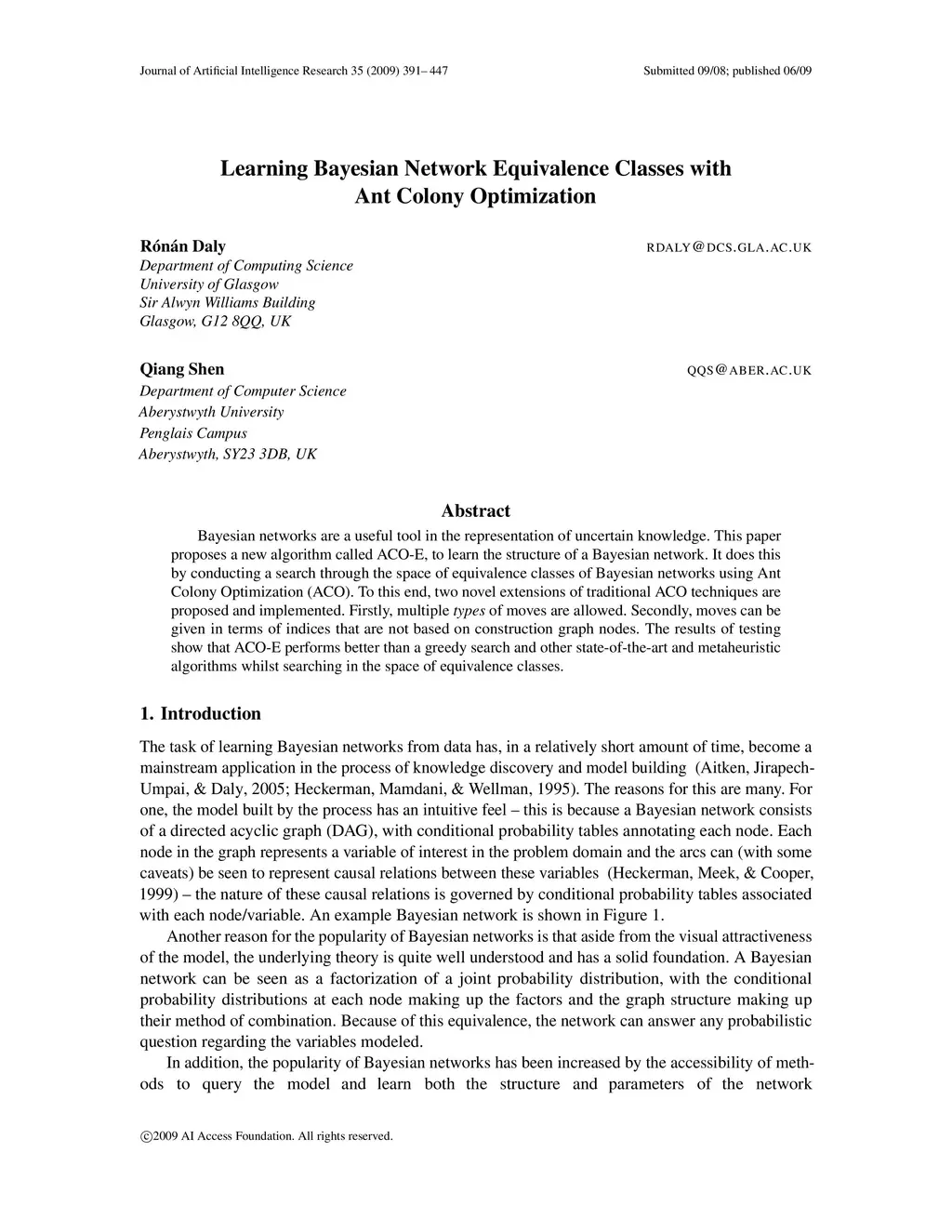 Journal of Artificial Intelligence Research (JAIR), 2009