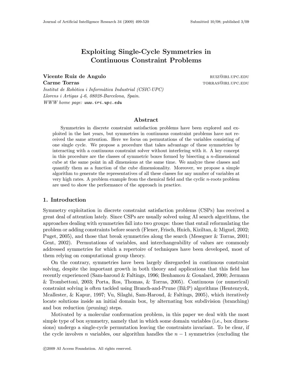 Exploiting Single-Cycle Symmetries in Continuous Constraint Problems