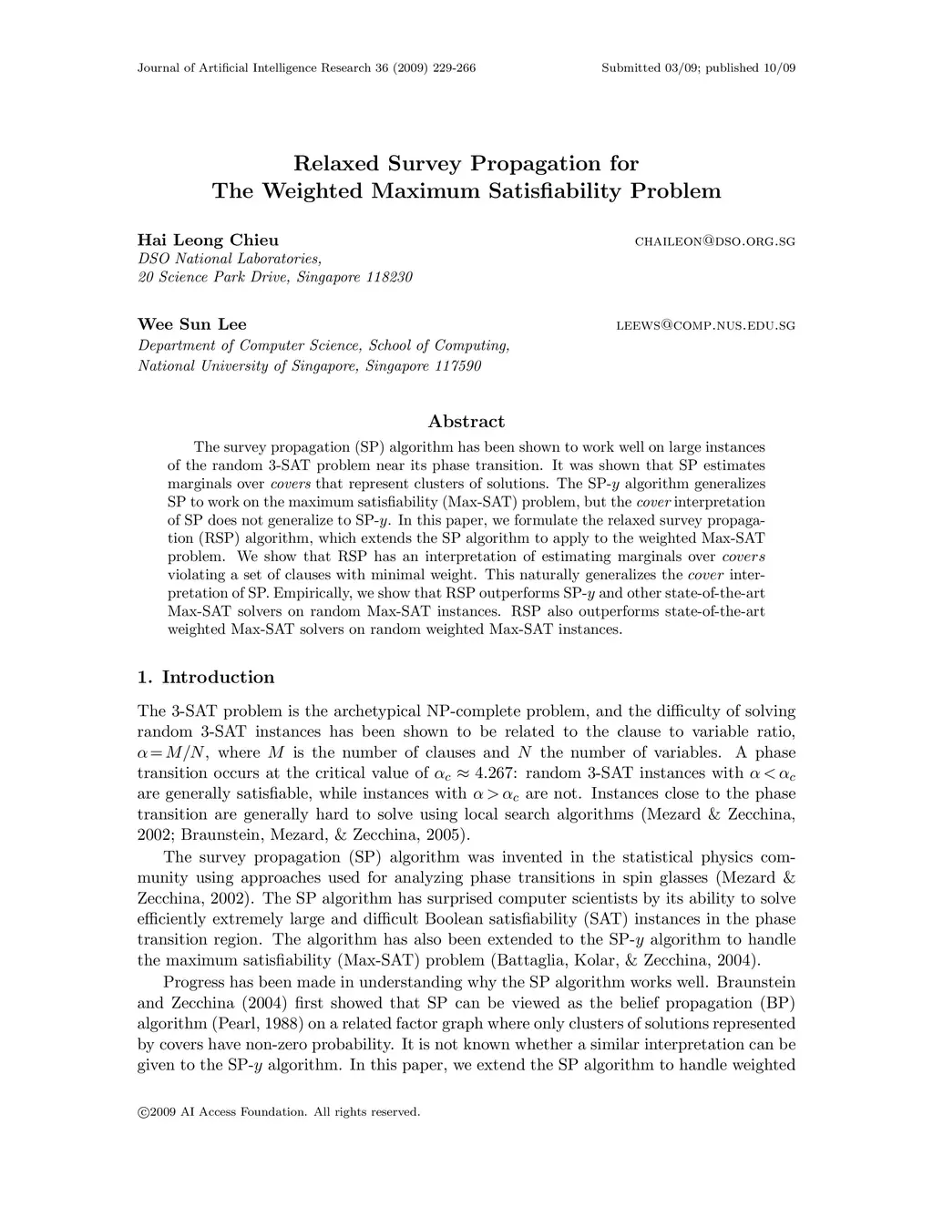 The survey propagation (SP) algorithm has been shown to work well on large instances of the random 3-SAT problem near its phase transition. It was shown that SP estimates marginals over covers that represent clusters of solutions. The SP-y algorithm generalizes SP to work on the maximum satisfiability (Max-SAT) problem, but the cover interpretation of SP does not generalize to SP-y. In this paper, we formulate the relaxed survey propagation (RSP) algorithm, which extends the SP algorithm to apply to the weighted Max-SAT problem. We show that RSP has an interpretation of estimating marginals over covers violating a set of clauses with minimal weight. This naturally generalizes the cover interpretation of SP. Empirically, we show that RSP outperforms SP-y and other state-of-the-art Max-SAT solvers on random Max-SAT instances. RSP also outperforms state-of-the-art weighted Max-SAT solvers on random weighted Max-SAT instances.