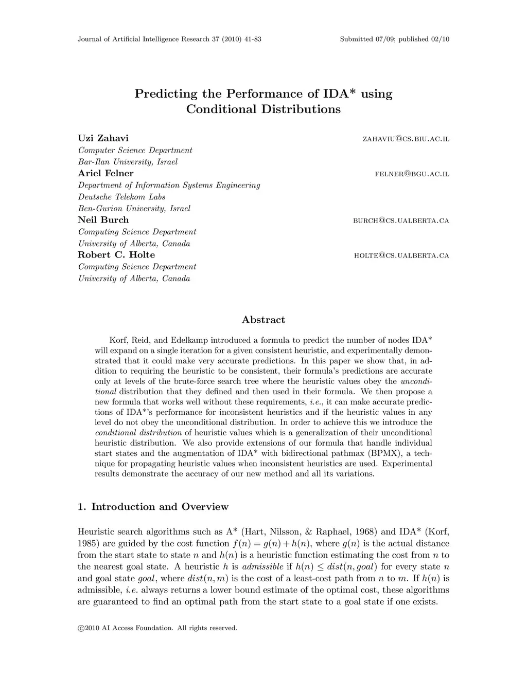 Predicting the Performance of IDA* using Conditional Distributions