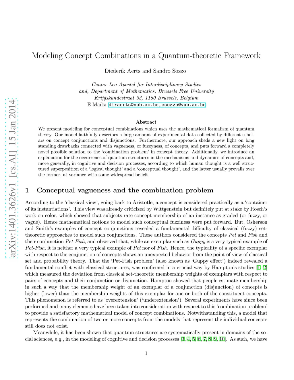 We present modeling for conceptual combinations which uses the mathematical formalism of quantum theory. Our model faithfully describes a large amount of experimental data collected by different scholars on concept conjunctions and disjunctions. Furthermore, our approach sheds a new light on long standing drawbacks connected with vagueness, or fuzziness, of concepts, and puts forward a completely novel possible solution to the 'combination problem' in concept theory. Additionally, we introduce an explanation for the occurrence of quantum structures in the mechanisms and dynamics of concepts and, more generally, in cognitive and decision processes, according to which human thought is a well structured superposition of a 'logical thought' and a 'conceptual thought', and the latter usually prevails over the former, at variance with some widespread beliefs