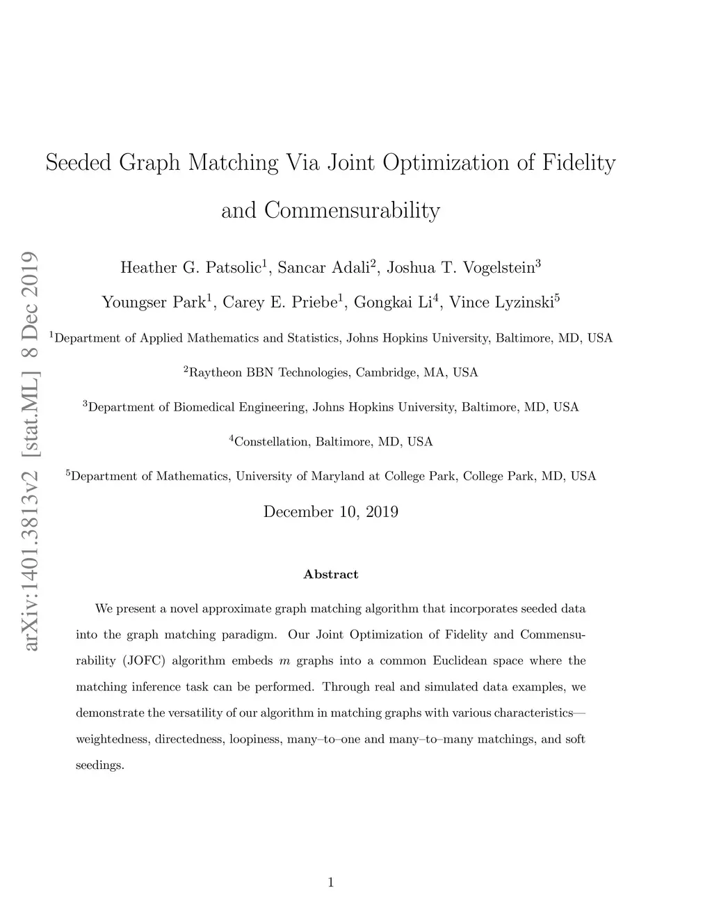 We present a novel approximate graph matching algorithm that incorporates seeded data into the graph matching paradigm. Our Joint Optimization of Fidelity and Commensurability (JOFC) algorithm embeds two graphs into a common Euclidean space where the matching inference task can be performed. Through real and simulated data examples, we demonstrate the versatility of our algorithm in matching graphs with various characteristics--weightedness, directedness, loopiness, many-to-one and many-to-many matchings, and soft seedings.