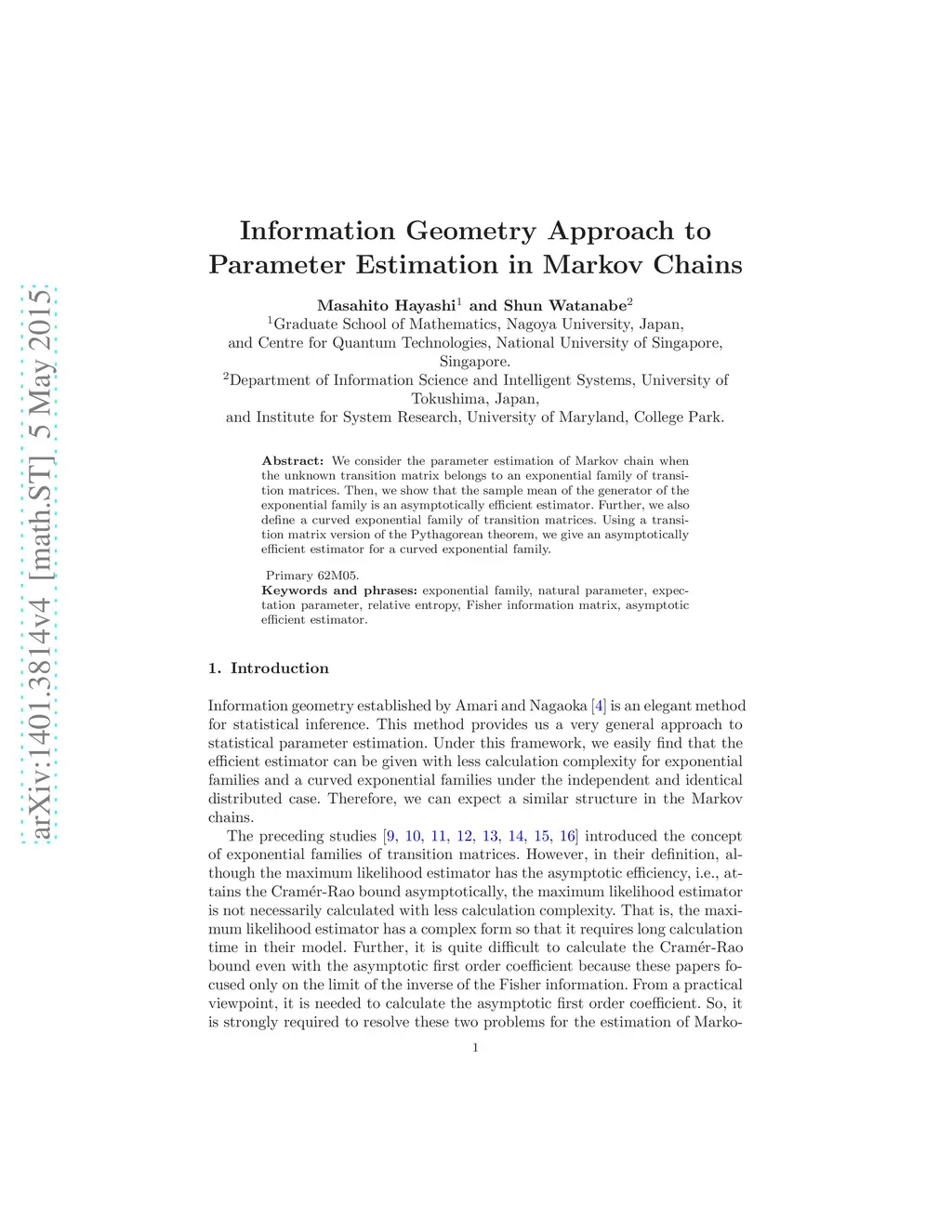 Information Geometry Approach to Parameter Estimation in Markov Chains
