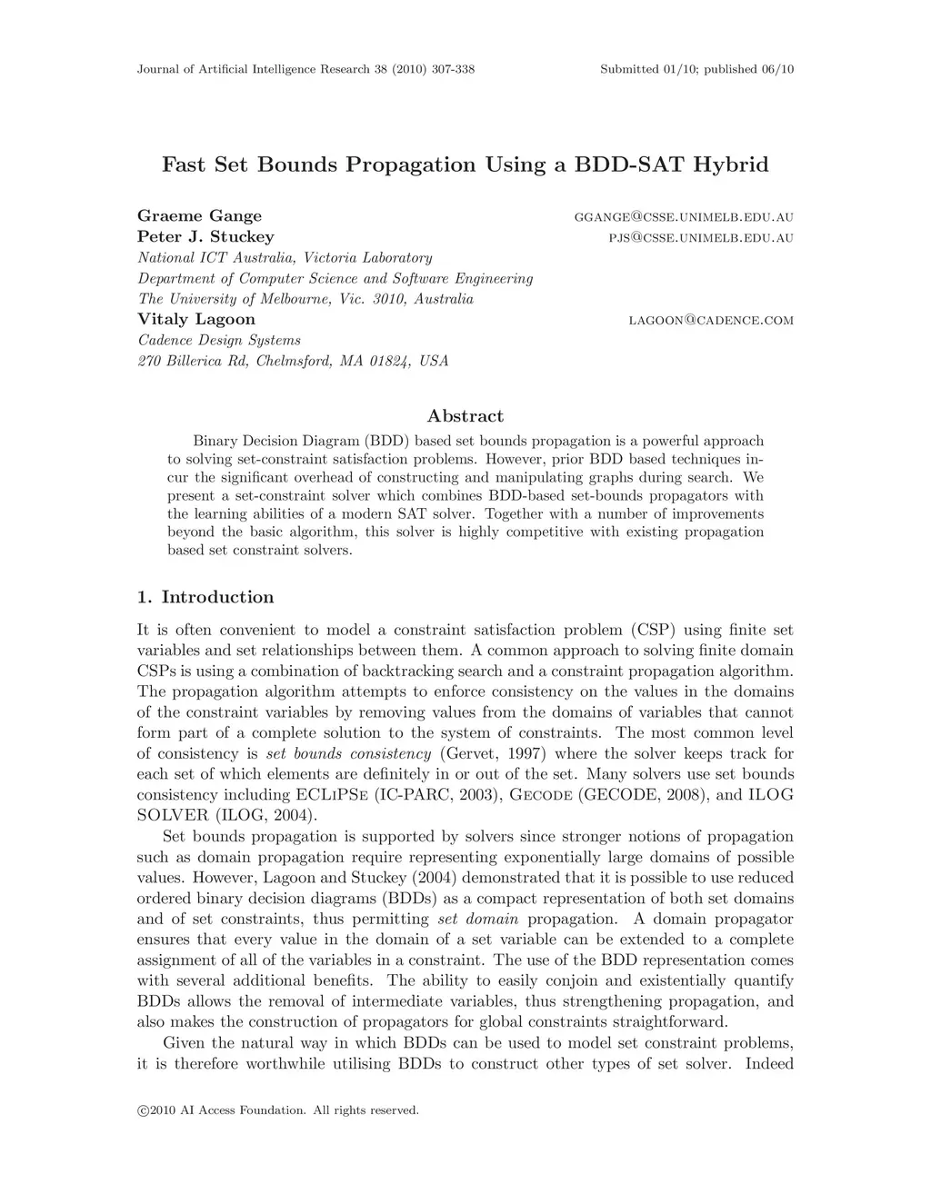 Journal of Artificial Intelligence Research (JAIR), 2010