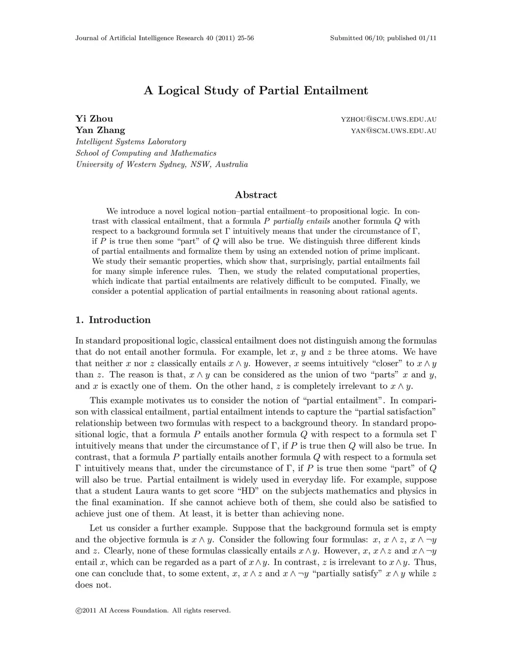 A Logical Study of Partial Entailment