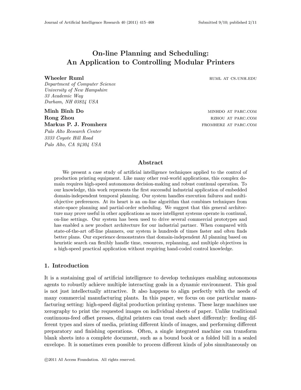 We present a case study of artificial intelligence techniques applied to the control of production printing equipment. Like many other real-world applications, this complex domain requires high-speed autonomous decision-making and robust continual operation. To our knowledge, this work represents the first successful industrial application of embedded domain-independent temporal planning. Our system handles execution failures and multi-objective preferences. At its heart is an on-line algorithm that combines techniques from state-space planning and partial-order scheduling. We suggest that this general architecture may prove useful in other applications as more intelligent systems operate in continual, on-line settings. Our system has been used to drive several commercial prototypes and has enabled a new product architecture for our industrial partner. When compared with state-of-the-art off-line planners, our system is hundreds of times faster and often finds better plans. Our experience demonstrates that domain-independent AI planning based on heuristic search can flexibly handle time, resources, replanning, and multiple objectives in a high-speed practical application without requiring hand-coded control knowledge.