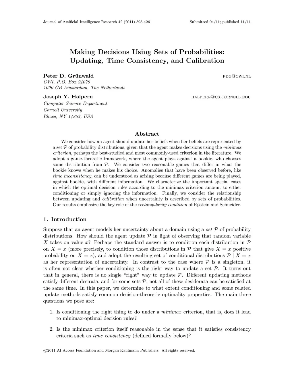 Making Decisions Using Sets of Probabilities: Updating, Time