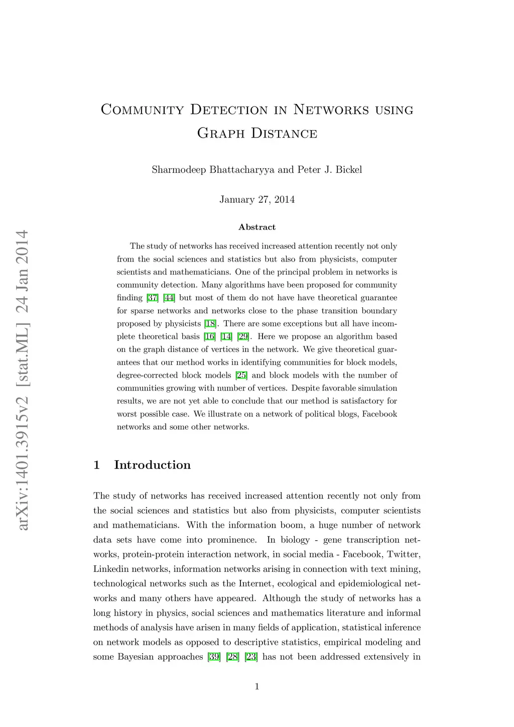 The study of networks has received increased attention recently not only from the social sciences and statistics but also from physicists, computer scientists and mathematicians. One of the principal problem in networks is community detection. Many algorithms have been proposed for community finding but most of them do not have have theoretical guarantee for sparse networks and networks close to the phase transition boundary proposed by physicists. There are some exceptions but all have some incomplete theoretical basis. Here we propose an algorithm based on the graph distance of vertices in the network. We give theoretical guarantees that our method works in identifying communities for block models and can be extended for degree-corrected block models and block models with the number of communities growing with number of vertices. Despite favorable simulation results, we are not yet able to conclude that our method is satisfactory for worst possible case. We illustrate on a network of political blogs, Facebook networks and some other networks.