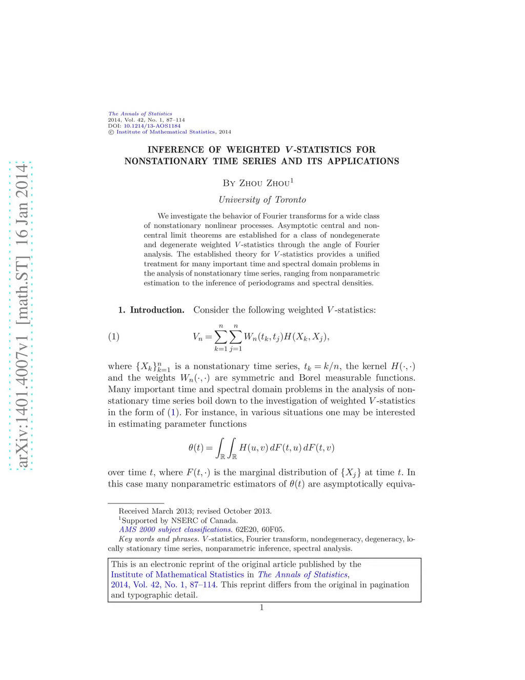 We investigate the behavior of Fourier transforms for a wide class of nonstationary nonlinear processes. Asymptotic central and noncentral limit theorems are established for a class of nondegenerate and degenerate weighted -statistics through the angle of Fourier analysis. The established theory for -statistics provides a unified treatment for many important time and spectral domain problems in the analysis of nonstationary time series, ranging from nonparametric estimation to the inference of periodograms and spectral densities.