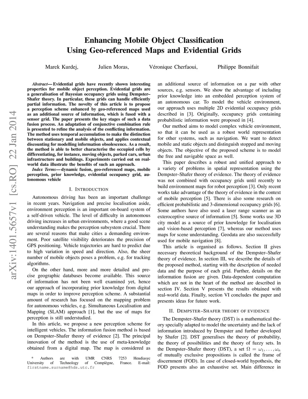 Evidential grids have recently shown interesting properties for mobile object perception. Evidential grids are a generalisation of Bayesian occupancy grids using Dempster- Shafer theory. In particular, these grids can handle efficiently partial information. The novelty of this article is to propose a perception scheme enhanced by geo-referenced maps used as an additional source of information, which is fused with a sensor grid. The paper presents the key stages of such a data fusion process. An adaptation of conjunctive combination rule is presented to refine the analysis of the conflicting information. The method uses temporal accumulation to make the distinction between stationary and mobile objects, and applies contextual discounting for modelling information obsolescence. As a result, the method is able to better characterise the occupied cells by differentiating, for instance, moving objects, parked cars, urban infrastructure and buildings. Experiments carried out on real- world data illustrate the benefits of such an approach.
