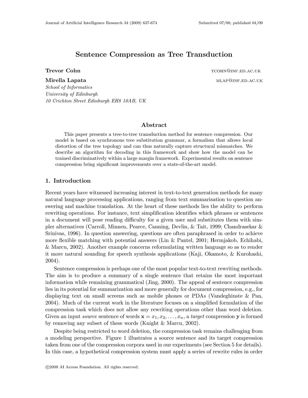 Journal of Artificial Intelligence Research (JAIR), 2009