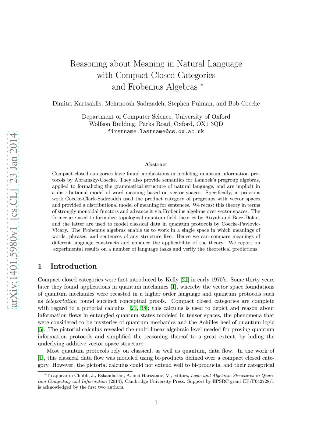 Reasoning about Meaning in Natural Language with Compact Closed